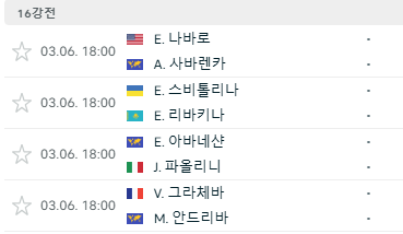 2024 프랑스오픈 테니스 대회 16강전의 대진표는 아래와 같습니다.