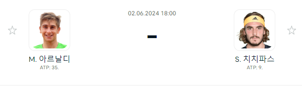 - 마르코 아르날디 vs. 스테파노스 치치파스 (9번 시드)